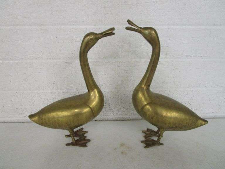 LOT 164 - Pair of Brass Duck Figures - 14.5" Tall