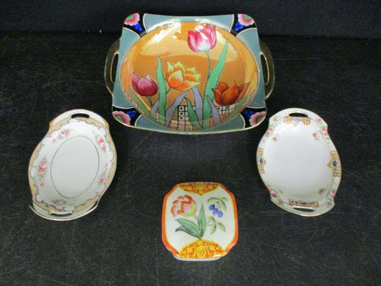 LOT 136 - Japan Tulip Decorated Bowl, 2 - Nippon Rose Decor Trays, Japan Covered Box
