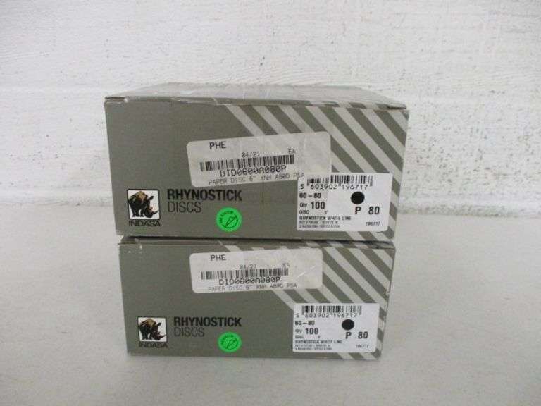 LOT 102 - 2 - Boxes of 100 Indasa Rhynostick Whiteline 6" 80 Grit Discs - New