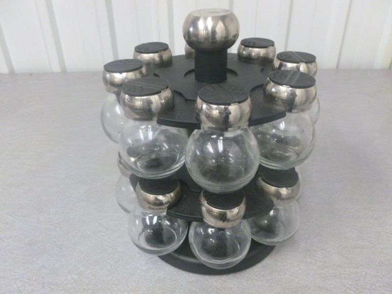 LOT 146 - (16) Piece Glass Spice Bottle Carousal