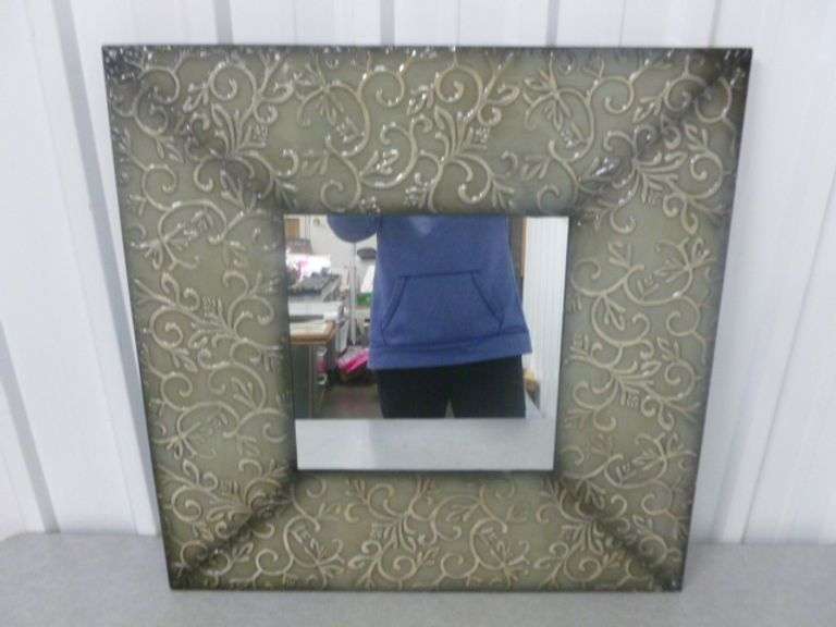 LOT 141 - Nice Embossed Metal Framed Wall Mirror