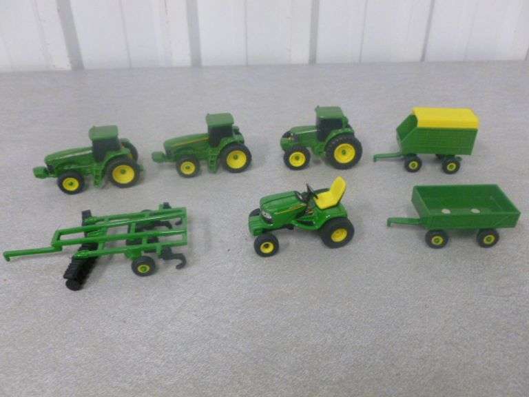 LOT 245 - Group Of (7) Ertl - John Deere 1/64th Scale Die Cast Metal / Molded Poly Farm Toys