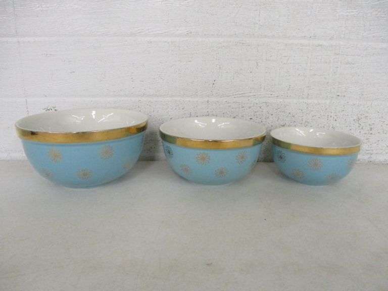 LOT 28 - Set of 3 Hall Blue w/Gold Daisy Mixing Bowls