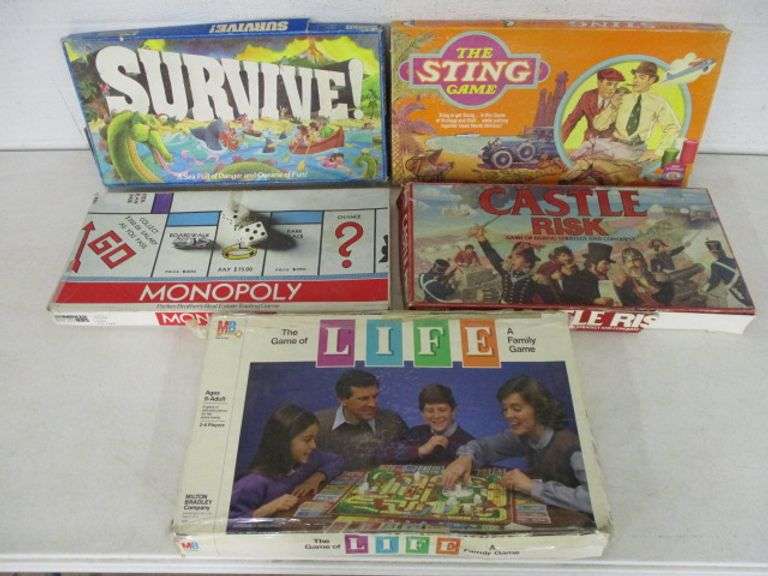 Castle Risk, Survive!, The Sting, The Game of Life, Monopoly