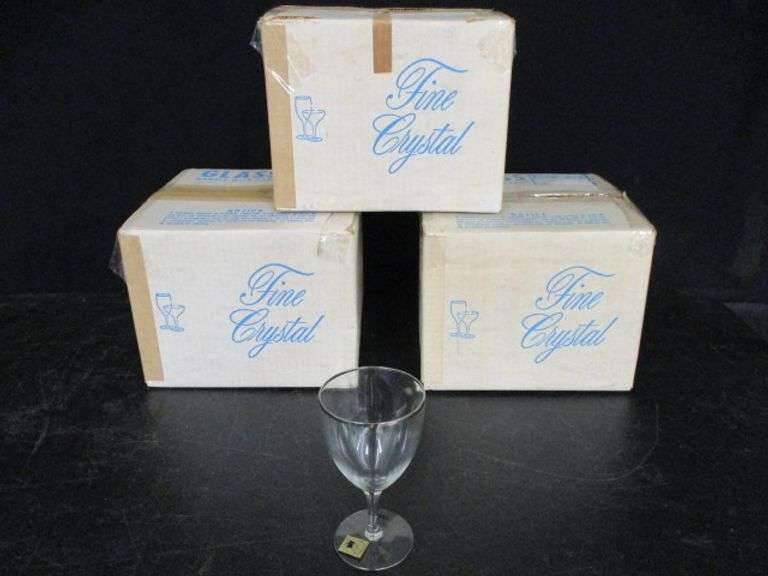LOT 291 - 12 - Silver Rimmed Crystal Goblets w/Boxes - 6" Tall
