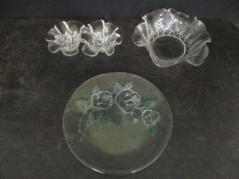 LOT 357 - Pattern Glass Round Tray, Bowl & Relish Bowl