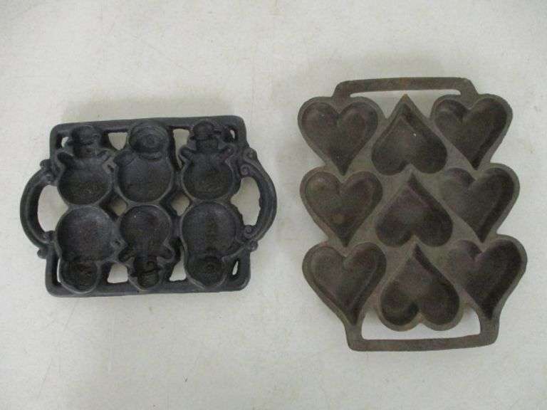 LOT 359 - Cast Iron Snowmen & Hearts Molds