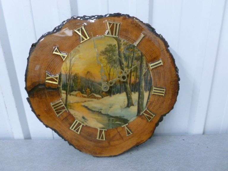 LOT 269 - Vintage Slab Wood - Battery Operated Wall Clock - 12" Diameter