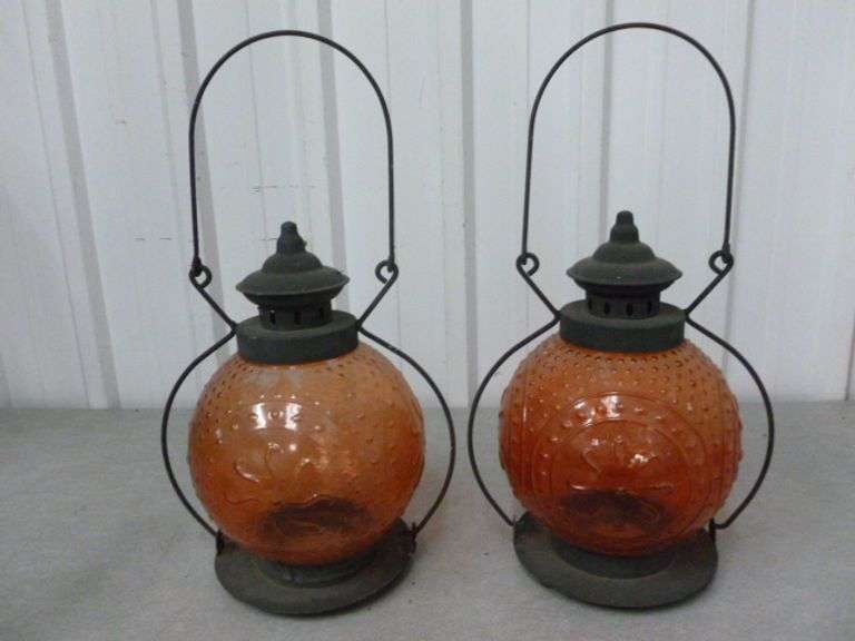 LOT 11 - (2) Metal / Ruby Red Globe Outdoor Hanging Decorations - 16" H