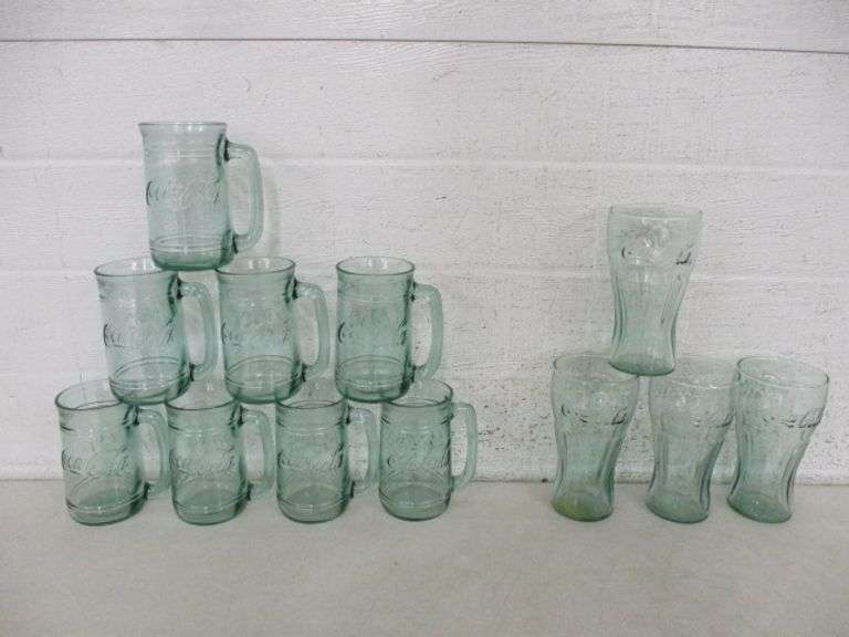 LOT 412 - 8 - Coca-Cola Green Mugs & 4 - Green Contour Glasses