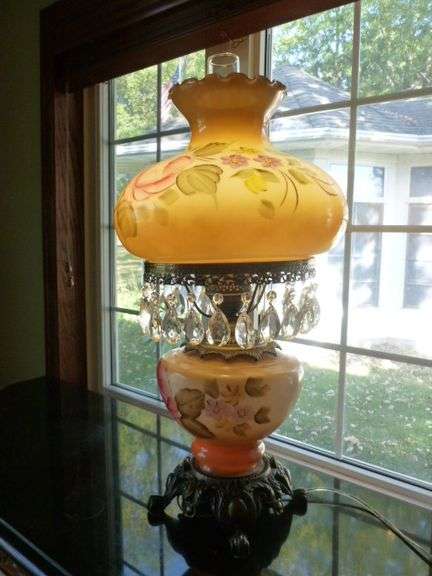 LOT 52 - Beautiful Large ' Gone With The Wind ' Style Hand Painted Floral Patten Lamp - 27" H