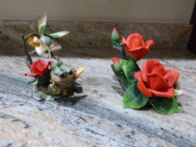 LOT 100 - (2) Nice Collectible Porcelain Rose / Hummingbird Figurines