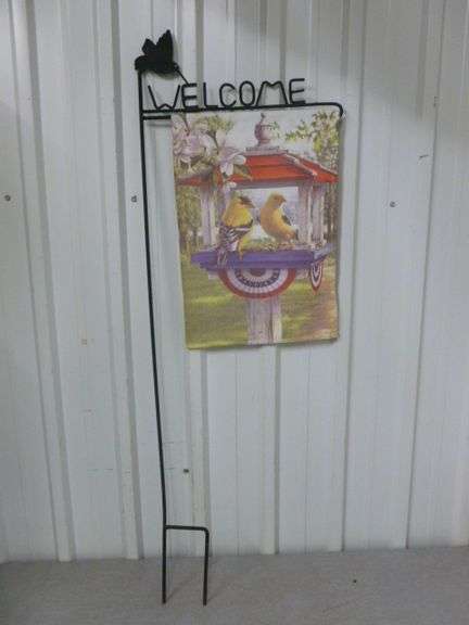 LOT 29 - Hummingbird Themed - Welcome Yard Stake Decoration With Flag - 43.5" H
