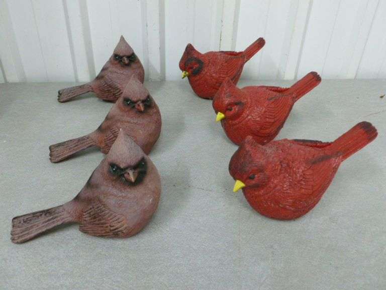 LOT 34 - (6) Molded Poly Cardinal Rock Garden Decorations - 8" L