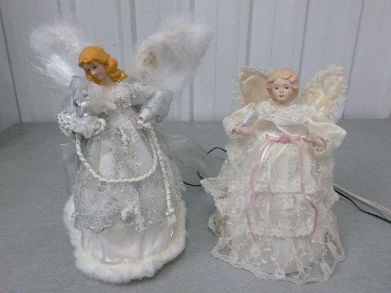 LOT 84 - (2) Animated / Lightup Angel Mantle Decorations - Including Fiberoptic - 11" - 12" H