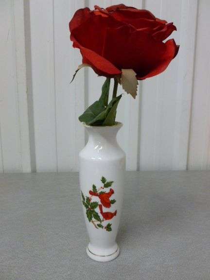 LOT 172 - Nice Lefton - Porcelain Cardinal Vase / With Artificial Roses - 7.5" H
