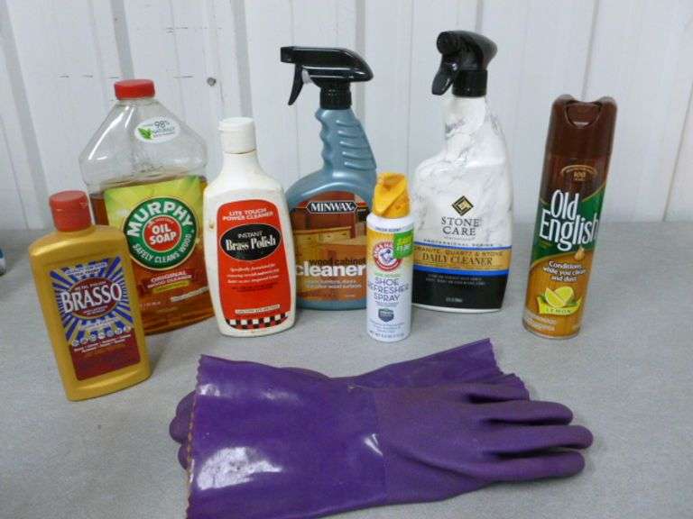 LOT 204 - Group Of Household Furniture Polish / Cleaners / Rubber Gloves