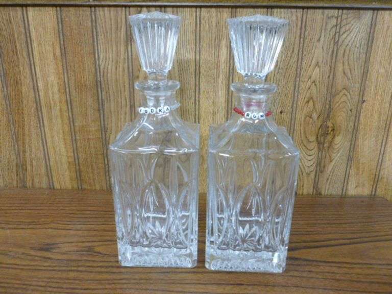 LOT 232 - (2) Nice Matching Crystal Liquor Decanters - 11" H - Heavy