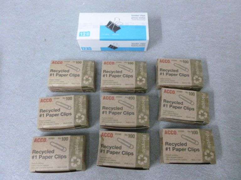 LOT 297 - Acco (9) Boxes Of New #1 Paper Clips / Box Of New Binder Clips