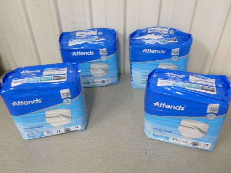 LOT 347 - (4) Packs Of 14 Attends Ultra Absorbency Adult Underwear Size XL - Three New / One Gone In Pack