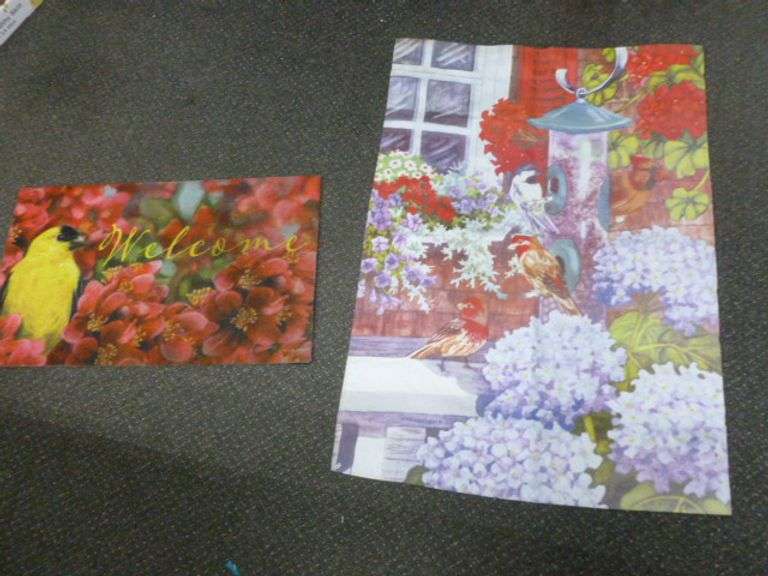 LOT 357 - Cardinal Themed Floor Rug / Bird Themed Yard Flag