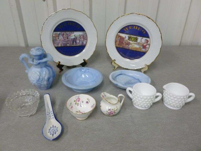 LOT 415 - (2) Collector Porcelain Plates / 1976 Avon Glass Set / Hobnail Milkglass
