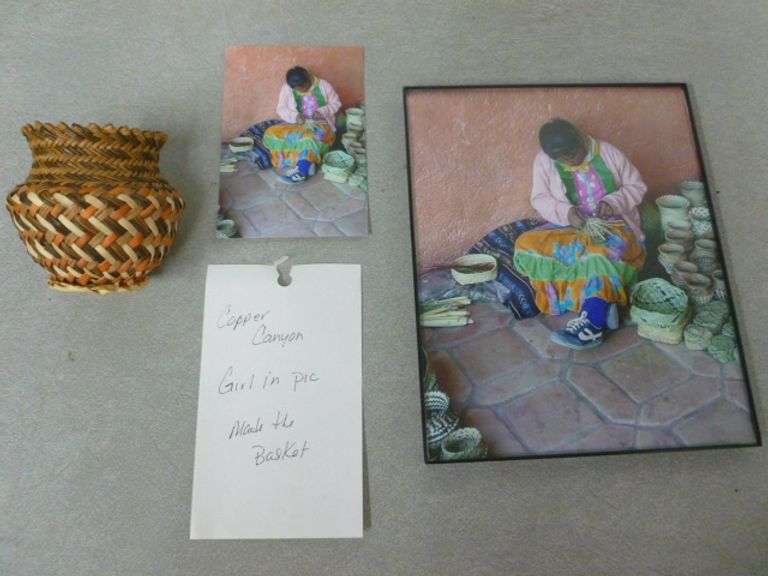 LOT 62 - Collectible Copper Canyon - Handmade Native American Basket / With Artist Picture