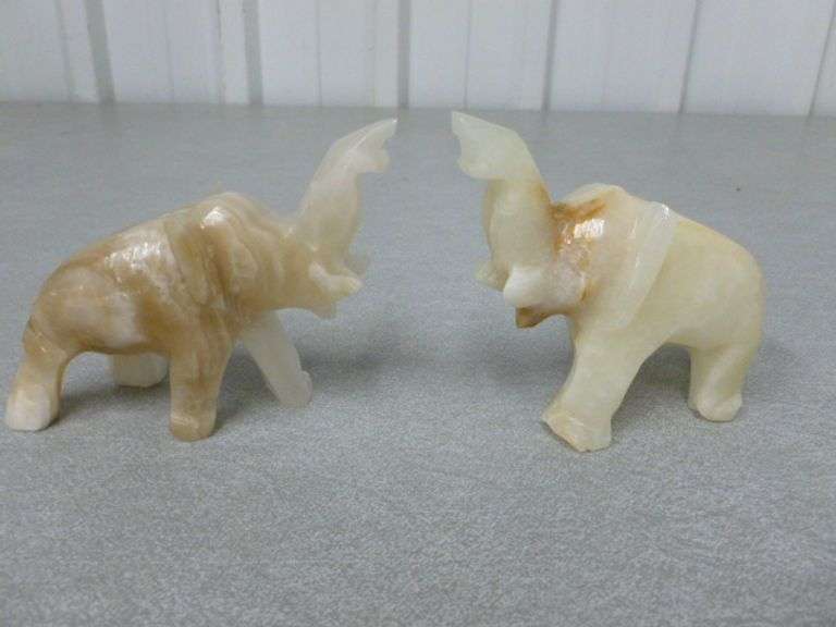 LOT 63 - (2) Nice Marble Elephant Figurines - 4.5" L