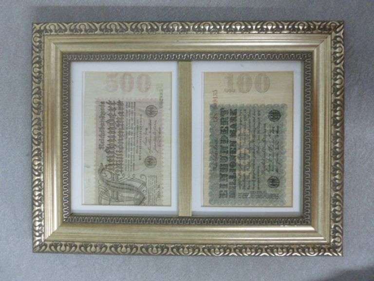 LOT 68 - Vintage Reichsbanknote Framed Paper Money - 100 & 500 Note