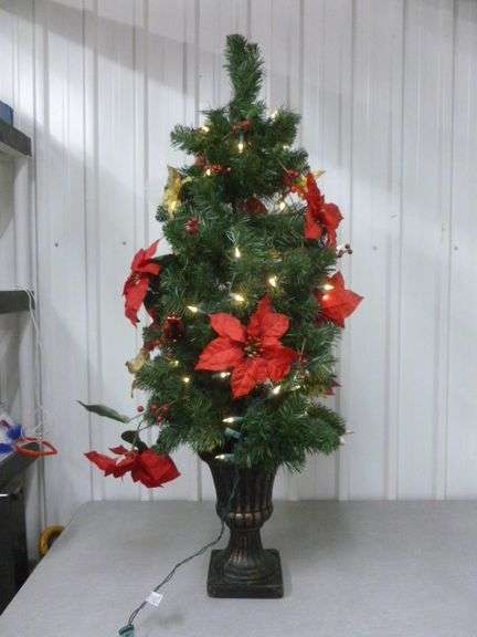 LOT 135 - Nice Tabletop Artificial Christmas Tree / White Light / With Floor Vase - 46" H