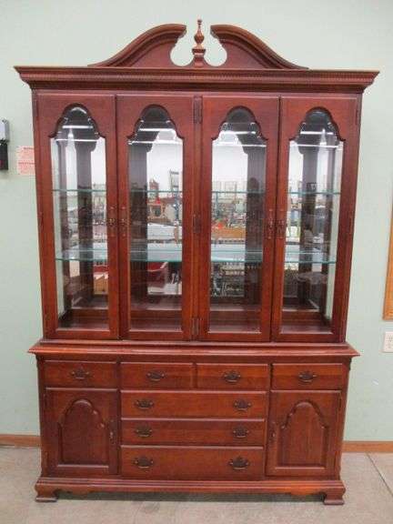 LOT 9 - Stanley Chippendale Style Cherry Illuminated Mirror Back China Buffet