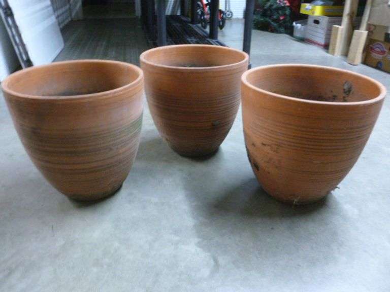 LOT 152 - (3) Heavy Duty Large Clay Planters - 13.5" Across x 13" H