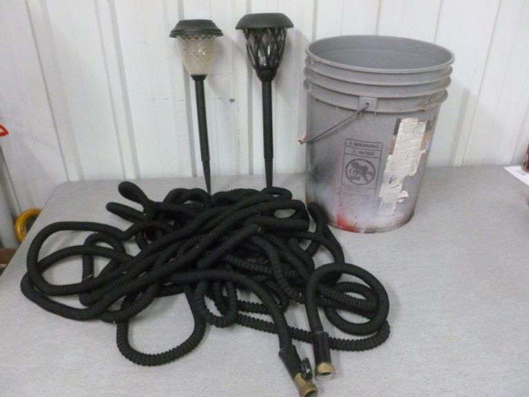 LOT 156 - Large Magic Garden Hose / Solar Lights / Pail