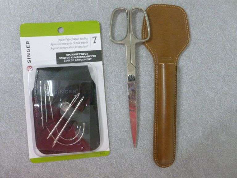 LOT 169 - Italian Marked Fabric Scissor / Solingen Germany Marked Scissor Sheath / New Singer 7 Pc Heavy Fabri