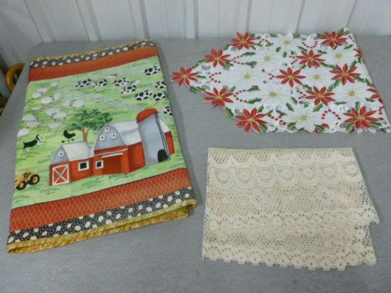 LOT 193 - (3) Nice Table Runners - Includes A Custom Made Farm Themed Quilted Runner - About 66" L