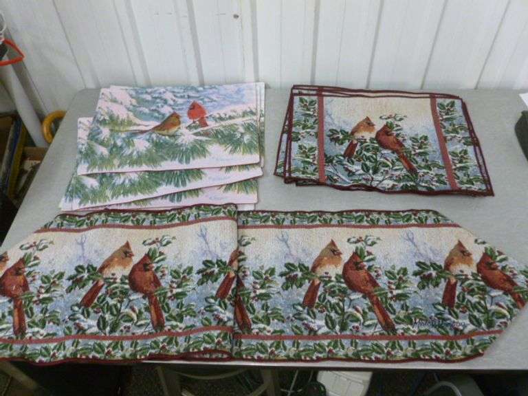 LOT 195 - Group Of (12) Nice Cardinal Themed Placemats - 60" Table Runner