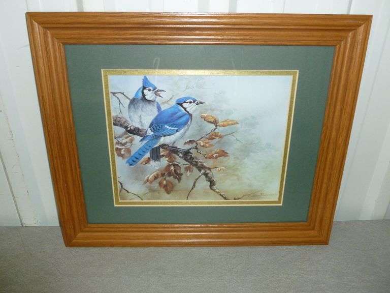 LOT 207 - Lanmini Ratnavira " Blue Jay " Framed Print - 13.5" x 16.5"