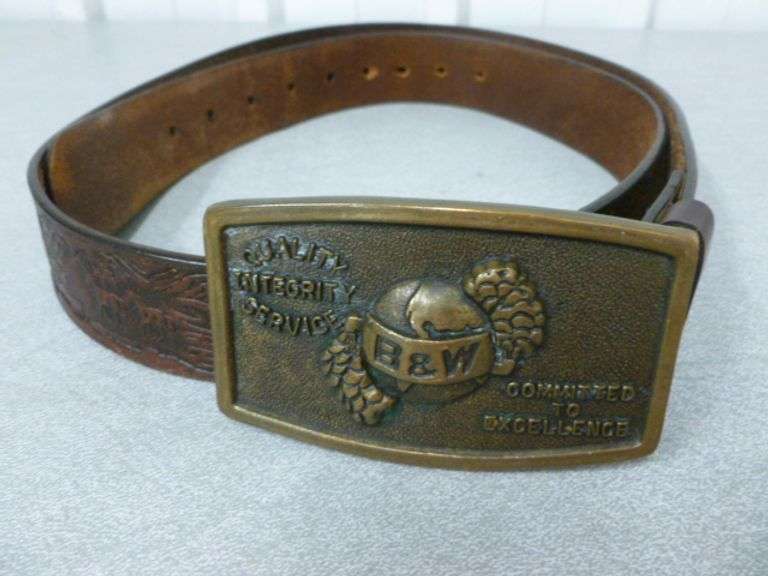 LOT 245 - Collectible B&W Brass Belt Buckle / With 48" Leather Belt