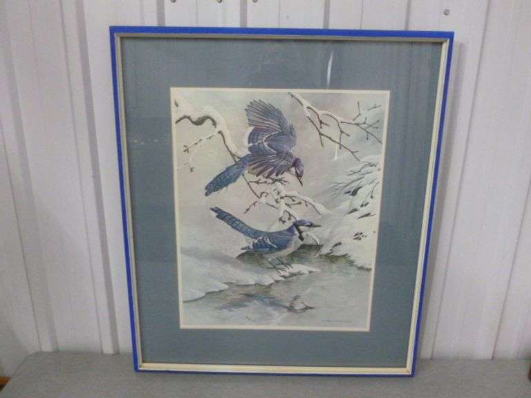 LOT 250 - Vintage 1969 Basil Ede " Blue Jay " Framed & Matted Print - 25" x 29"
