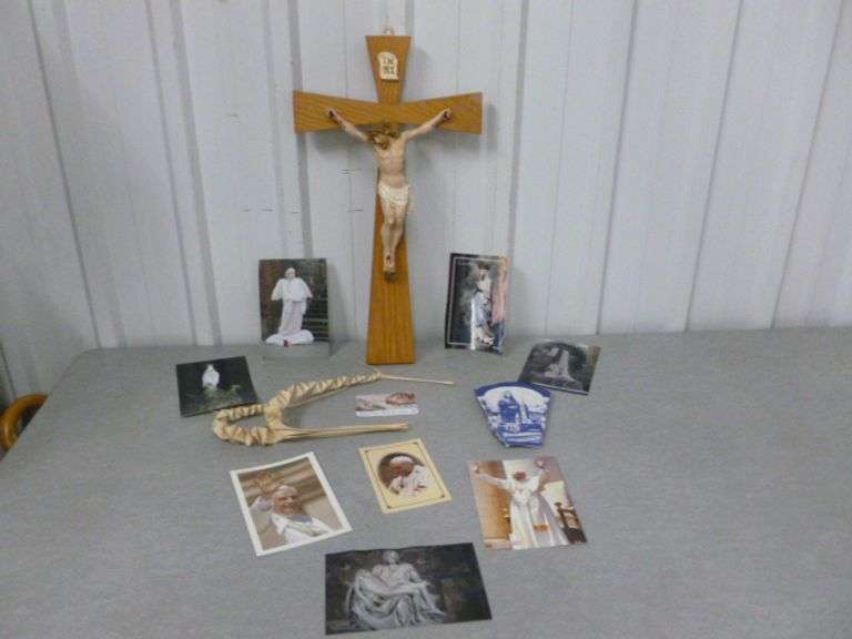 LOT 277 - Large Wooden Wall Crucifix - 10" x 18" - Vatican Collectibles