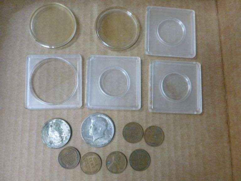 LOT 297 - Group Of 1920's - 30's Wheat Pennies / 1979 Susan B. Anthony Coin / 71 Kennedy Half Dollar /Cases