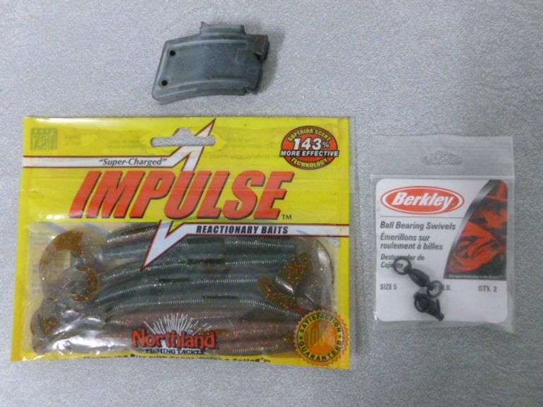 LOT 305 - New Impulse Fishing Worms / New Berkley Swivel / Small Caliber Gun Clip - Marked No. 77