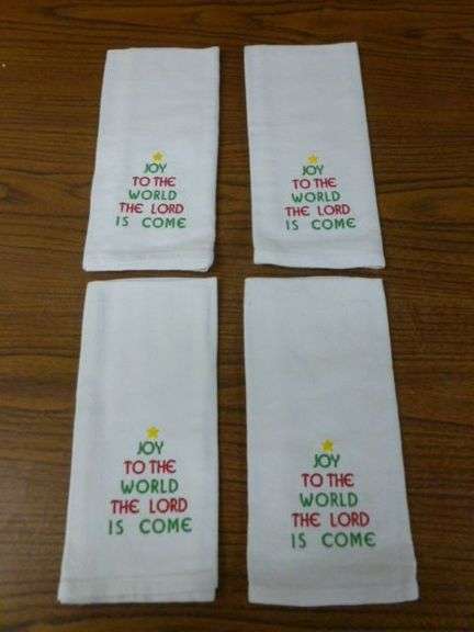 LOT 356 - (4) New Joy To The World - Custom Made Embroidered Dish Towels