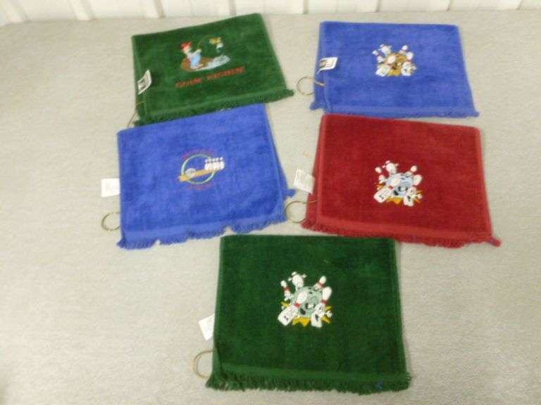 LOT 359 - (5) New Custom Made Embroidered - Recreation Towels - Bowling / Fishing