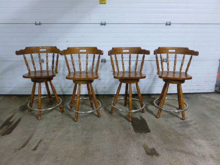 Lot 2:A Set Of (4) Heavy Duty Barrel Back Solid Wood Swivel Bar Stools