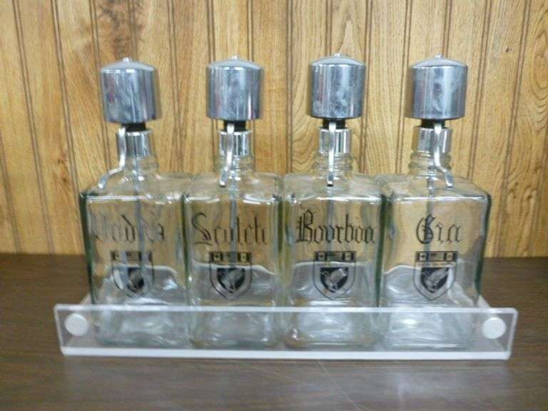 Lot 11:Nice Duck's Unlimited (4) Piece Glass Liquor Decanter Set With Rack